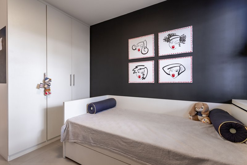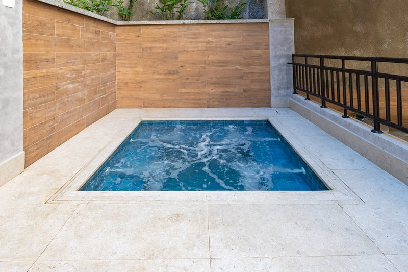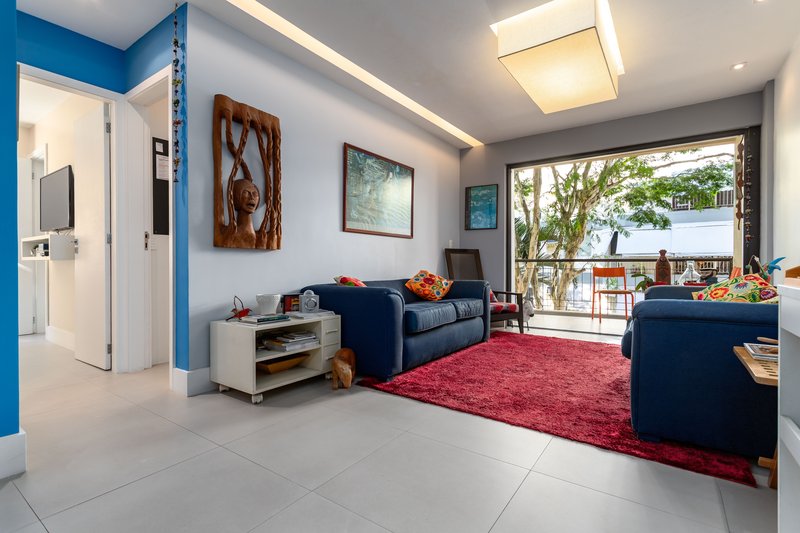 O apartamento tem dois quartos, sendo uma suíte confortável com um ótimo walking closet. A sala, bem distribuída em dois ambientes, se abre para a varanda através de uma porta de correr com abertura total, que desaparece ao ser recolhida, ampliando os espaços e deixando a luz do sol da manhã entrar.